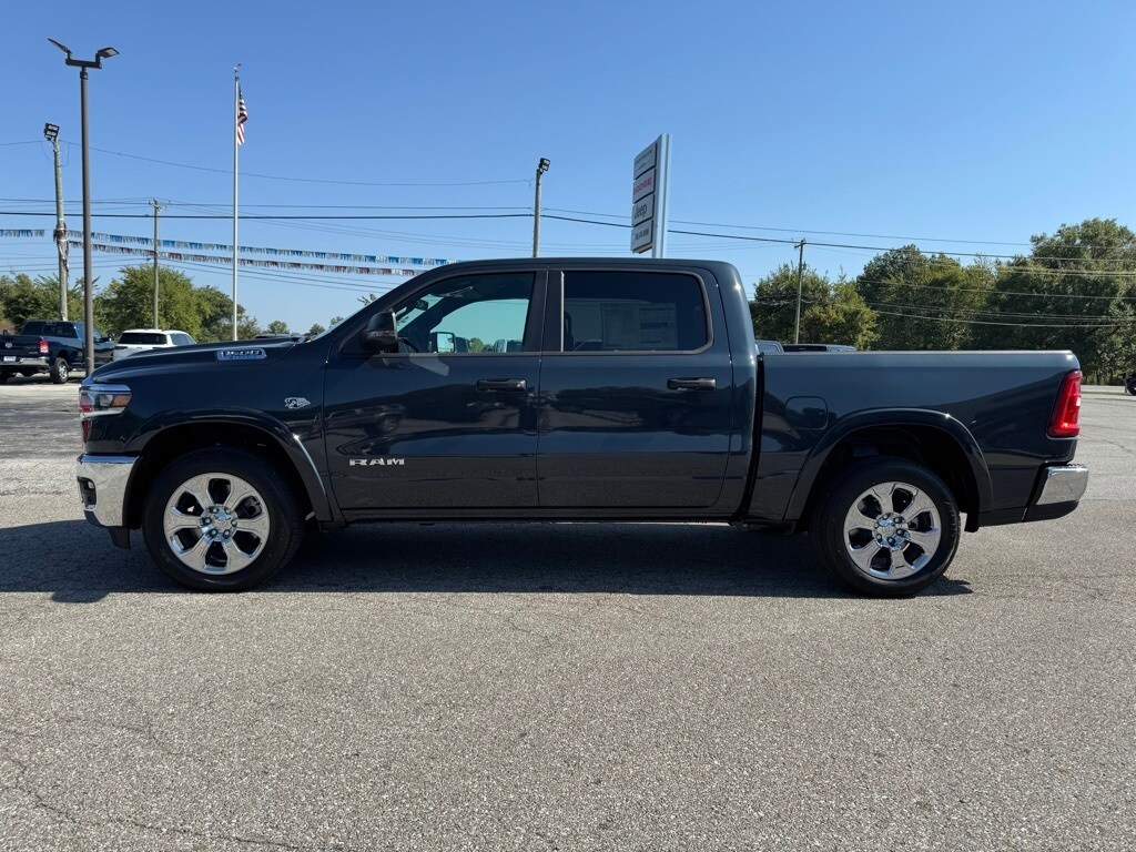 Take advantage of our attractive low-rate financing options. Our access to various Credit Unions and National Banks can provide financing for most credit levels. We can tailor a finance package to fit your needs. To get started, complete our secure online credit application. Big Horn Level 2 Equipment Group (115V Auxiliary Power Outlet, 115V Auxiliary Rear Power Outlet, 12" Touchscreen Display, 2nd Row In Floor Storage Bins, 3 Rear Seat Head Restraints, 4 Way Front Headrests, 400W Inverter, 4G LTE Wi-Fi Hot Spot, 9 Amplified Speakers w/Subwoofer, Air Conditioning ATC w/Dual Zone Control, Apple CarPlay, Auto Power-Folding Mirrors, Auto-Dimming Exterior Driver Mirror, Auto-Dimming Rear-View Mirror, Black Exterior Mirrors, Black Premium Power Mirrors, Body Color Fender Flares, Bucket Seats, Center Console Parts Module, Cluster 7.0" TFT Color Display, Configurable Drive Mode, Connected Travel & Traffic Services, Connectivity - US/Canada, Convex Wide-Angle Exterior Mirror Insert, Deluxe Cloth Bucket Seats, Disassociated Touchscreen Display, Exterior Mirrors Courtesy Lamps, Exterior Mirrors w/Heating Element, Exterior Mirrors w/Supplemental Signals, Front Seat Back Map Pockets, Full Length Floor Console, Global Telematics Box Module (TBM), Glove Box Lamp, Google Android Auto, GPS Antenna Input, GPS Navigation, HD Radio, Heated Front Seats, Heated Steering Wheel, Integrated Center Stack Radio, Integrated Voice Command w/Bluetooth, Leather Wrapped Steering Wheel, LED Dome Lamp w/On/Off Switch, LED Footwell Lighting, Manual Adjust 4-Way Front Passenger Seat, Media Hub w/2 Charge Only USBs, Overhead LED Lamps, Power 2-Way Driver Lumbar Adjust, Power Adjust 8-Way Driver Seat, Power Adjustable Pedals, Premium Overhead Console, Radio: Uconnect 5 Nav w/12.0" Display, Rear 60/40 Folding Seat, Rear Center Armrest, Rear Power Sliding Window, Rear Window Defroster, Remote Tailgate Release, Security Alarm, SiriusXM Radio Service, SiriusXM w/360L, Steering Wheel Mounted Audio Controls, Sun Visors w/Illuminated Vanity Mirrors, Universal Garage Door Opener, USB Host Flip, and Wheels: 20" x 9" Aluminum Chrome Clad (WRK)), Quick Order Package 27Z Big Horn, 33 Gallon Fuel Tank, 4-Wheel Disc Brakes, 48V Belt Starter Generator, 6 Speakers, ABS brakes, Air Conditioning, Alloy wheels, AM/FM radio, Anti-Spin Differential Rear Axle, Apple CarPlay/Android Auto, Auto High-beam Headlights, Brake assist, Bumpers: chrome, Cloth Bucket Seats, Compass, Delay-off headlights, Driver door bin, Dual front impact airbags, Dual front side impact airbags, Electronic Stability Control, Front anti-roll bar, Front Bucket Seats, Front Center Armrest w/Storage, Front fog lights, Front reading lights, Front wheel independent suspension, Fully automatic headlights, Heated door mirrors, Illuminated entry, Low tire pressure warning, Manual Adjust 4-Way Driver Seat, Manual Folding Exterior Mirrors, MOPAR Front & Rear Rubber Floor Mats, Occupant sensing airbag, Outside temperature display, Overhead airbag, Overhead console, Panic alarm, ParkView Rear Back-Up Camera, Passenger door bin, Passenger vanity mirror, Power door mirrors, Power steering, Power windows, Radio data system, Radio: Uconnect 5 W w/8.4" Display, RAM Grille Badge - Chrome, Rear anti-roll bar, Rear step bumper, Rear Wheelhouse Liners, Remote keyless entry, Speed control, Supplier Part Tracking (J-1), Tachometer, Telescoping steering wheel, Tilt steering wheel, Traction control, Trip computer, Variably intermittent wipers, Voltmeter, Wheels: 18" x 8" Cast-Aluminum Painted, and Wheels: 20" x 9" Aluminum Chrome Clad (WRD)